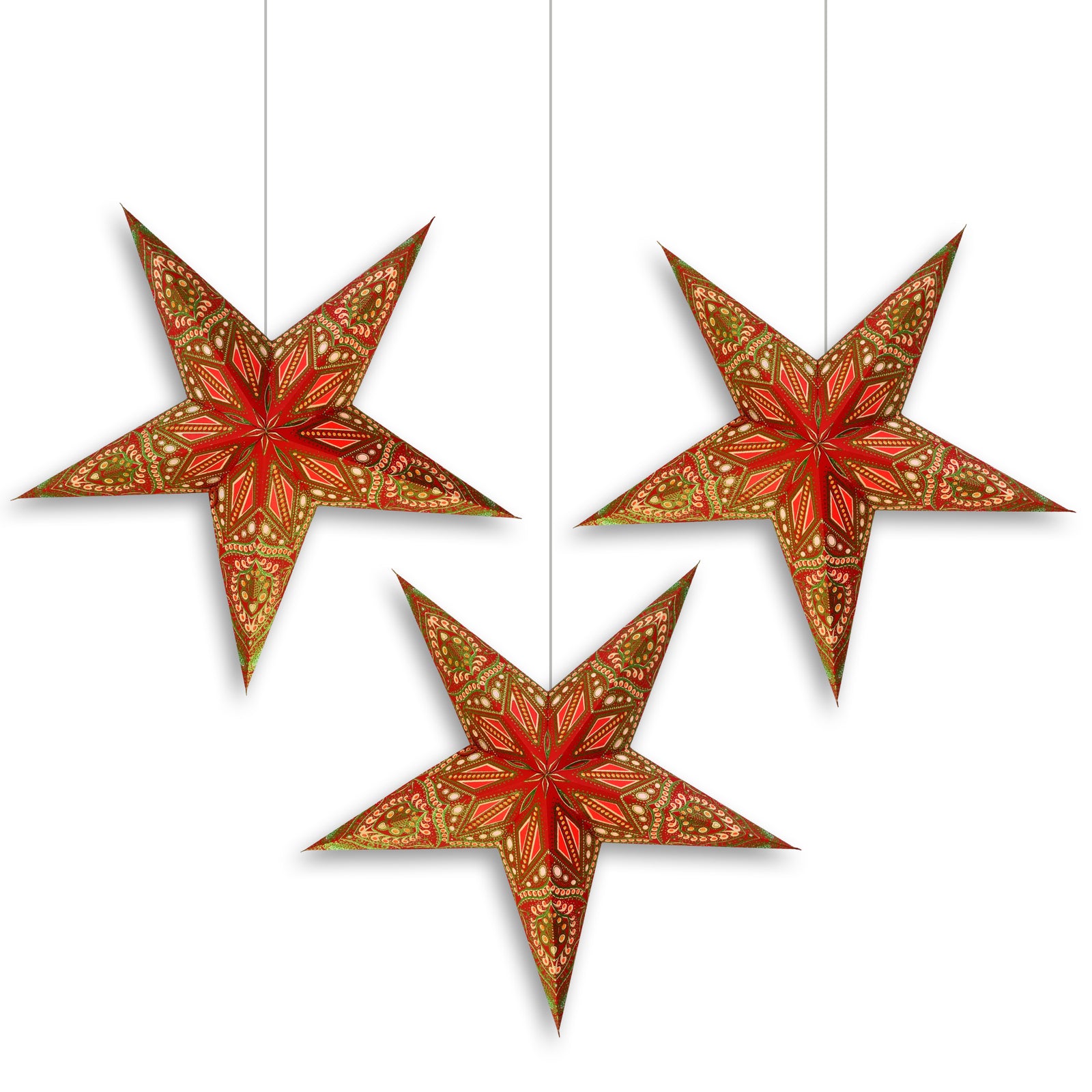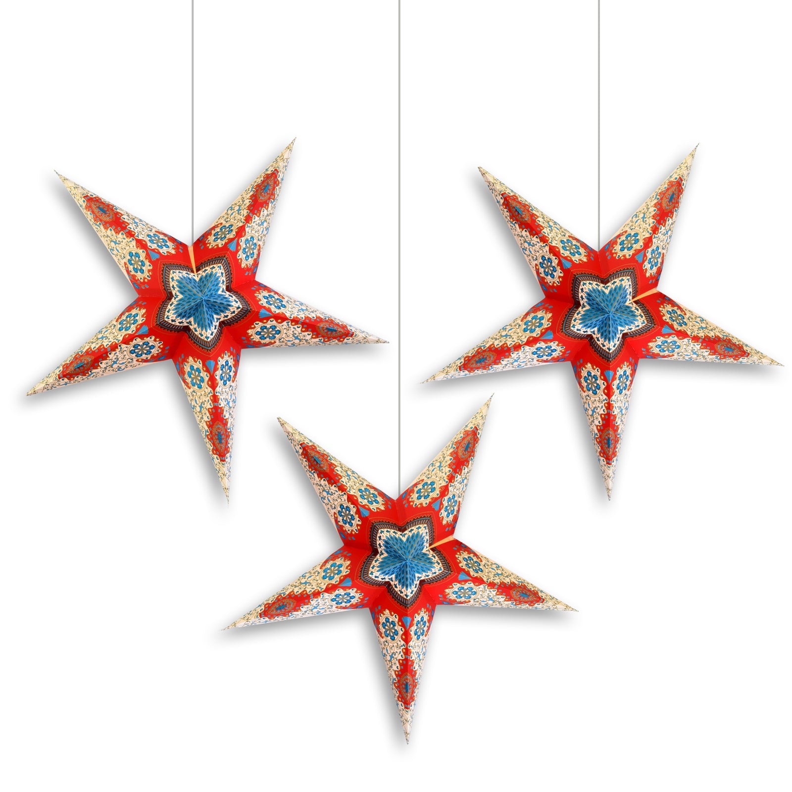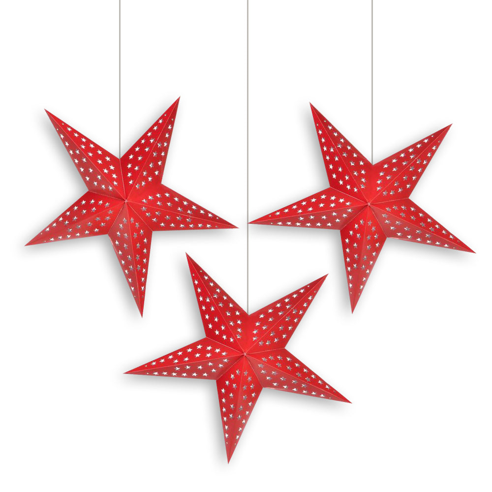 3-PACK Red Starry Night 24" Illuminated Paper Star Lanterns Hanging Decorations