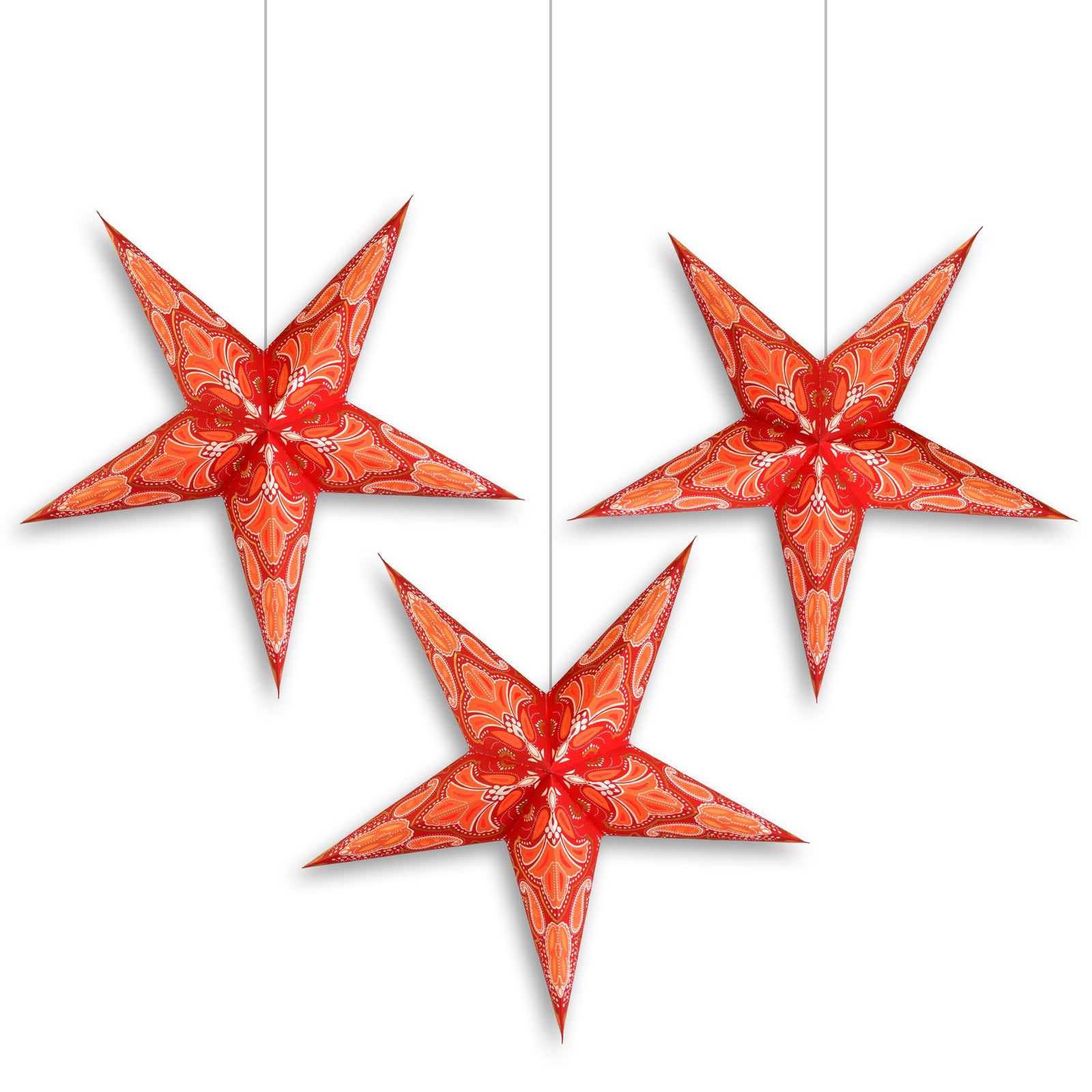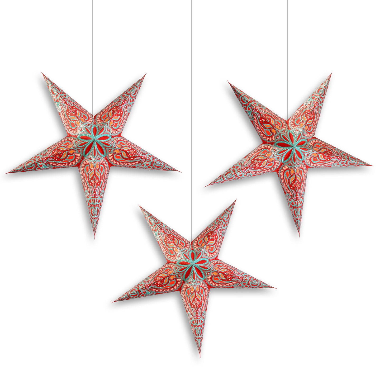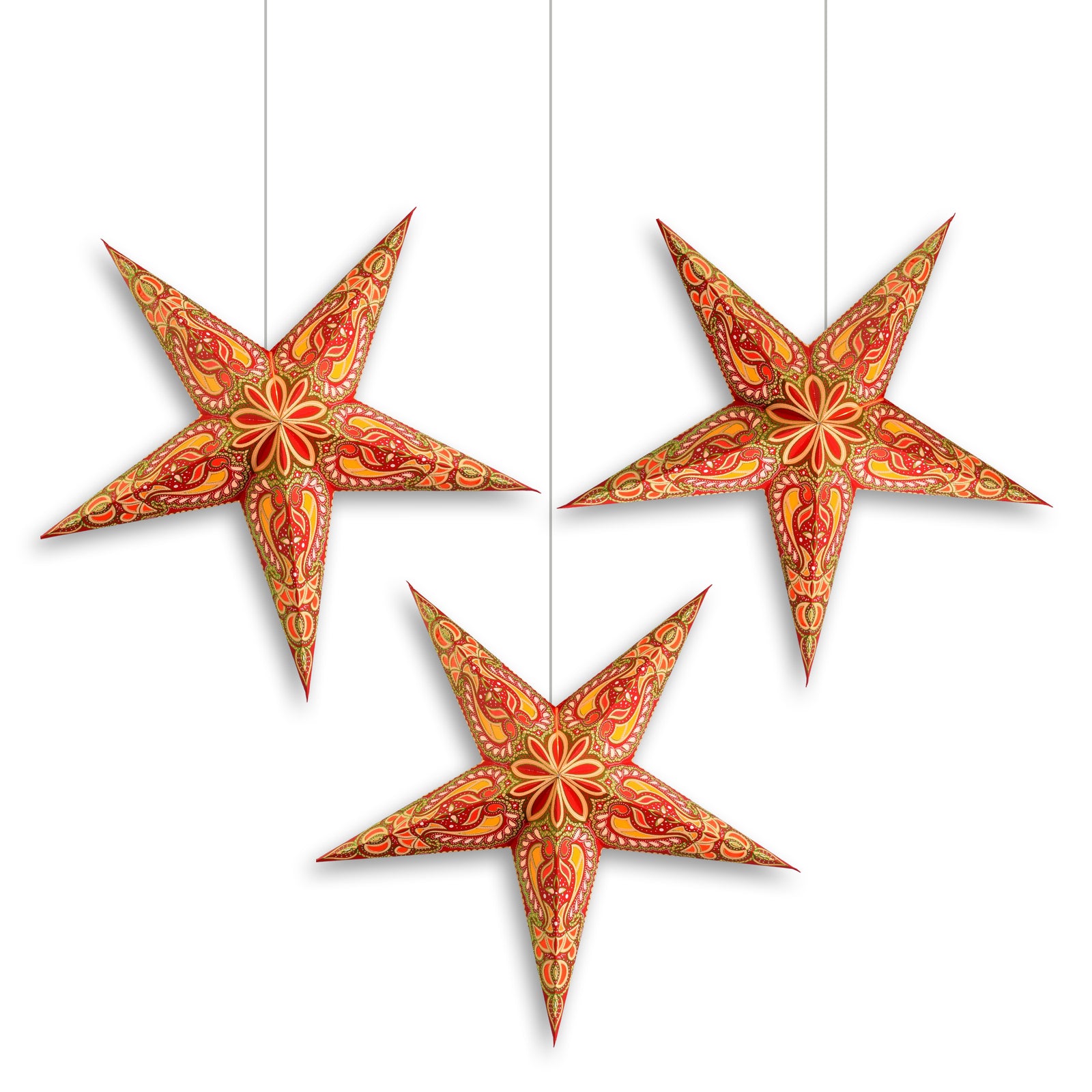 3-PACK Red Starry Night 24" Illuminated Paper Star Lanterns Hanging Decorations