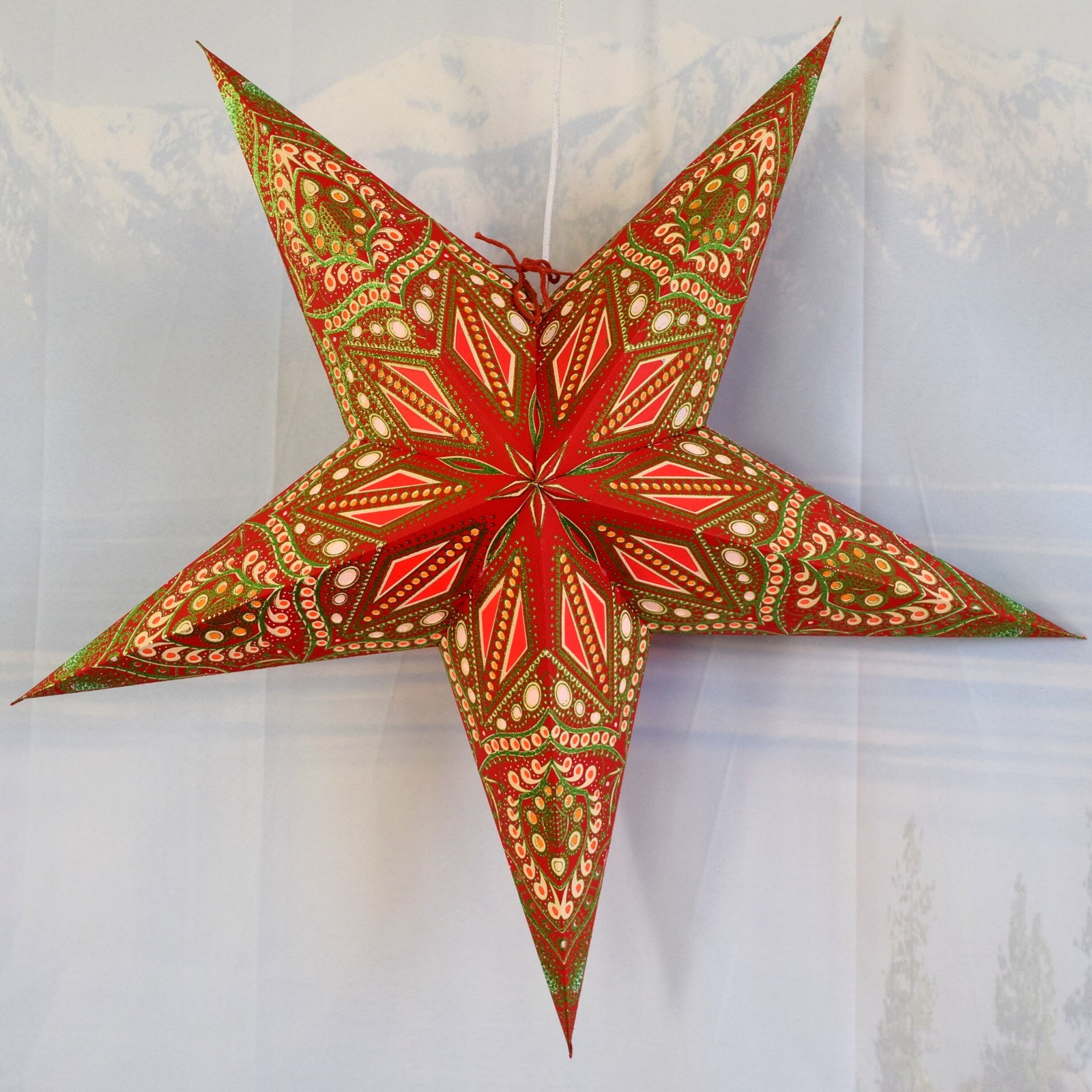 24 Inch Paper Star Lantern, Red Green Twilight Jewel Glitter