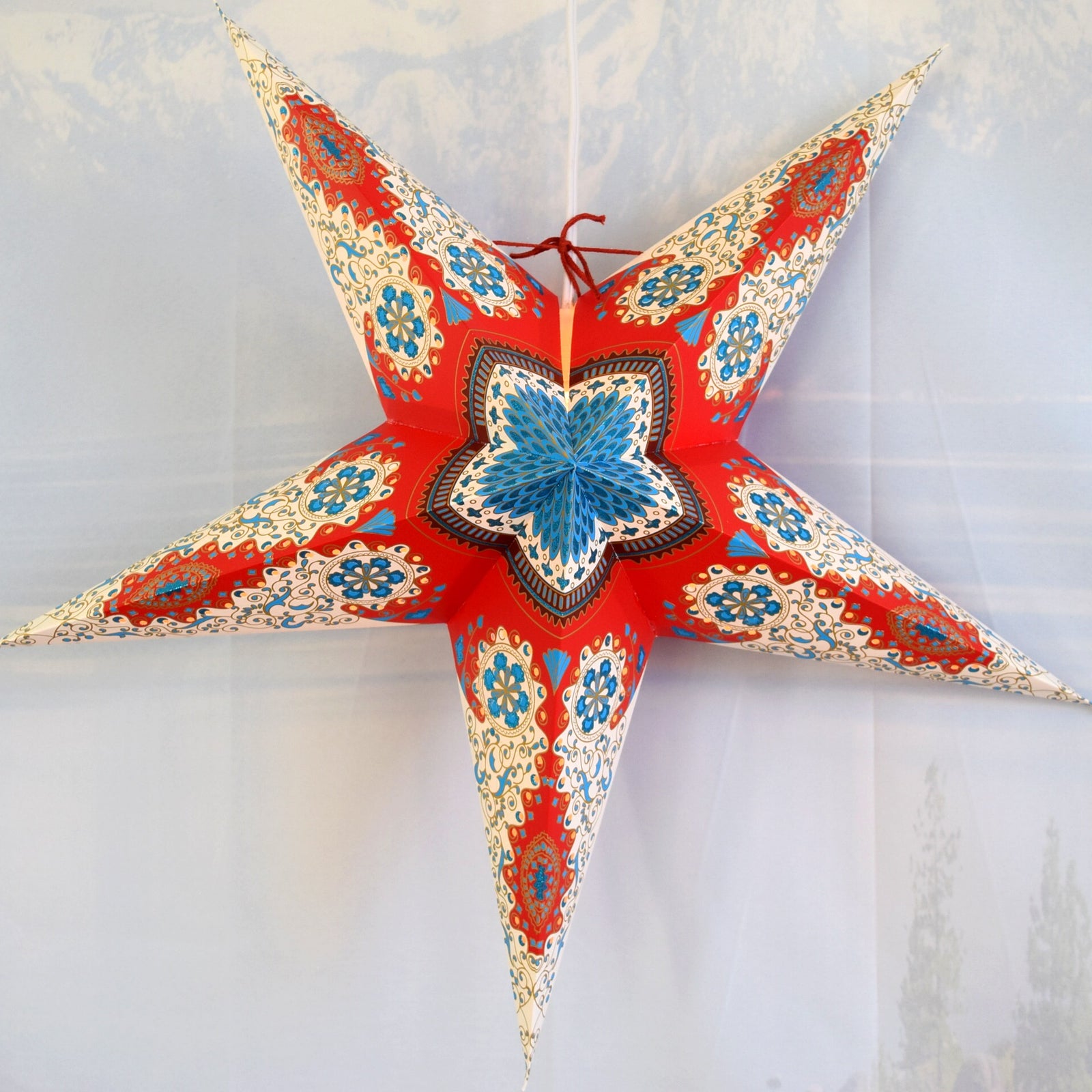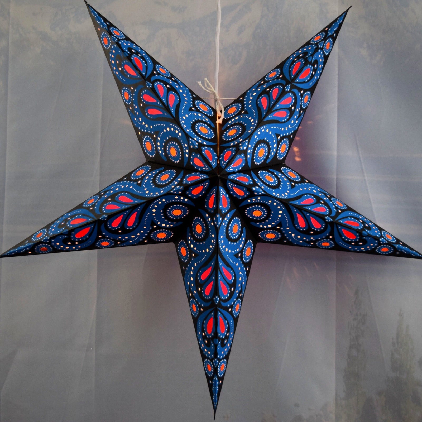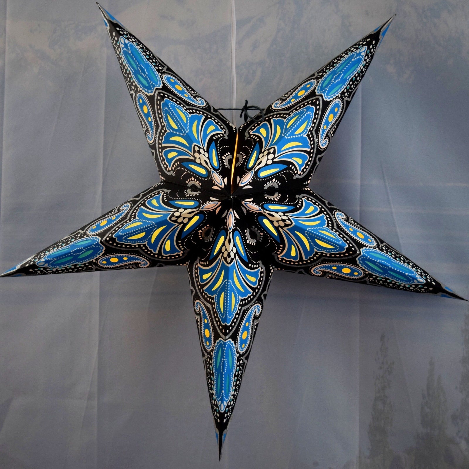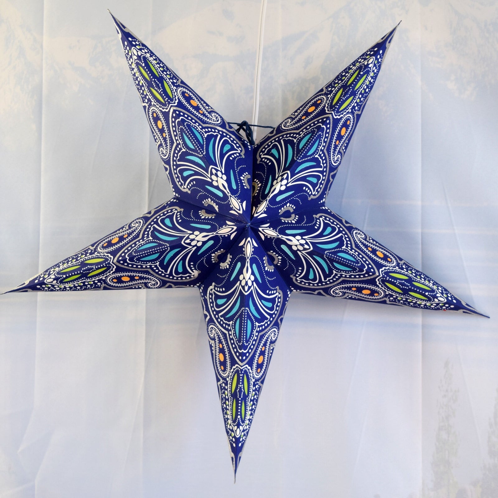 24 Inch Paper Star Lantern, Blue Astral Bloom