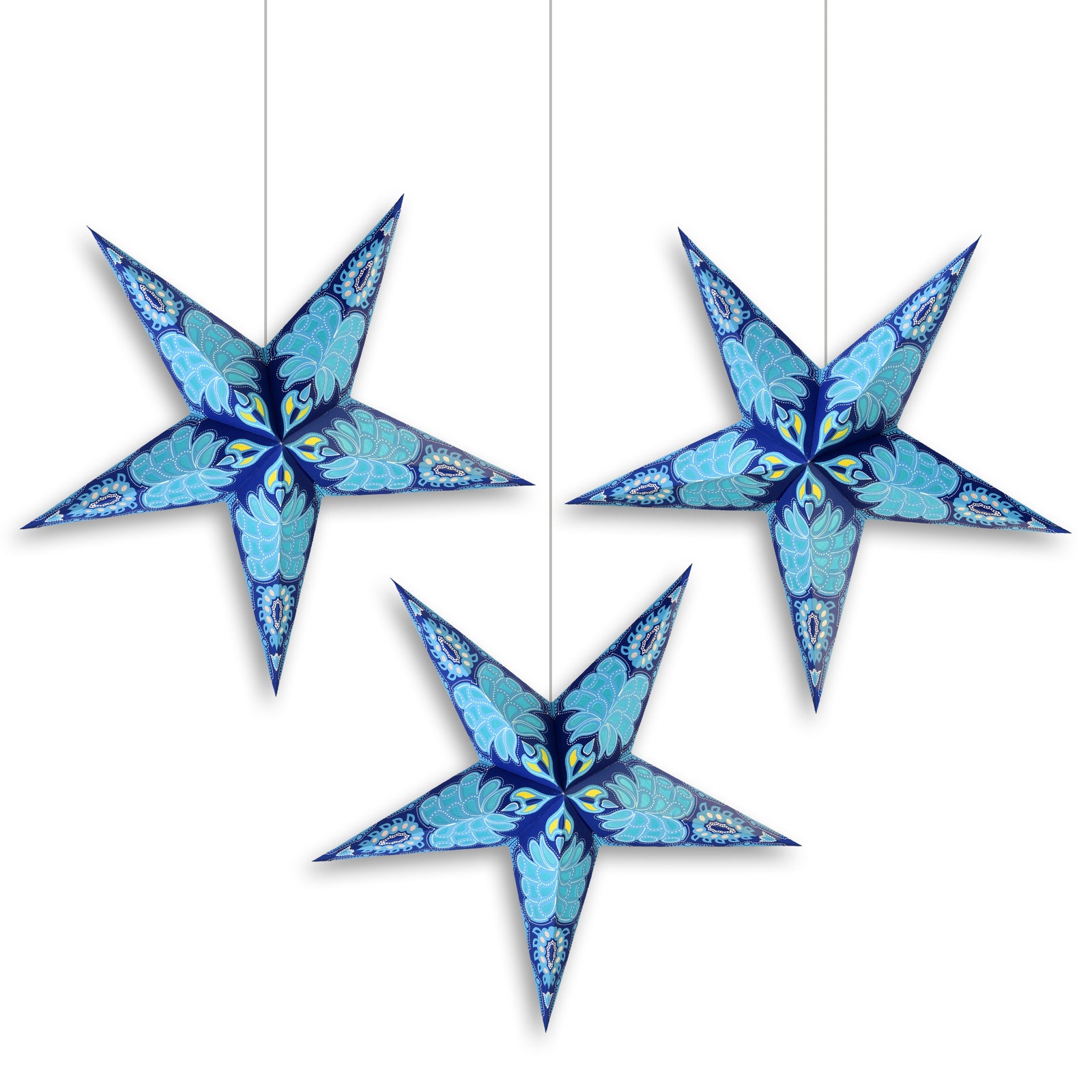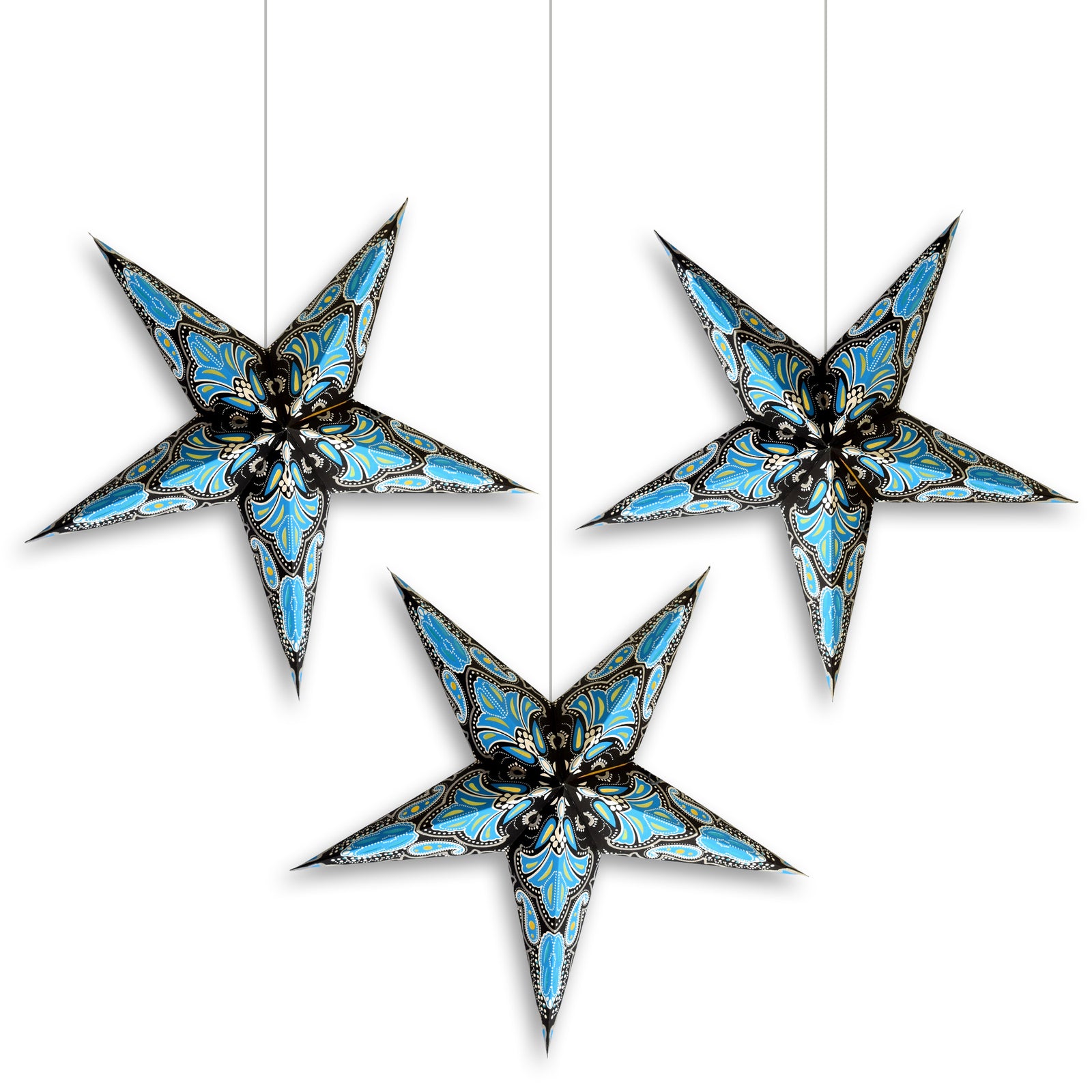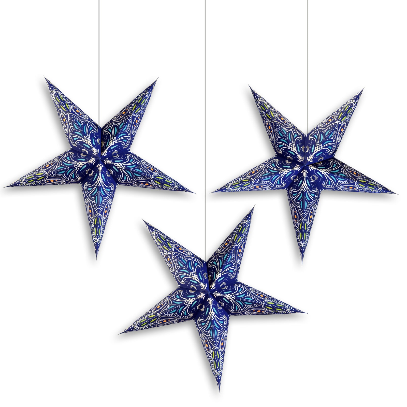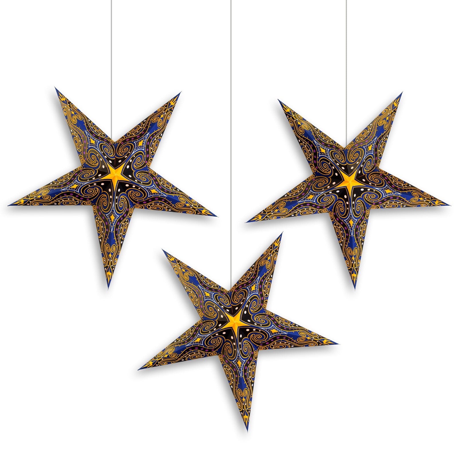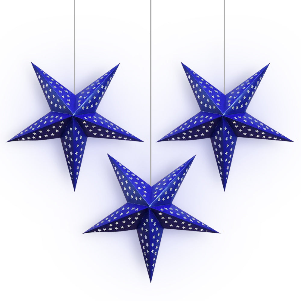 3-PACK Dark Blue Starry Night 24" Illuminated Paper Star Lanterns Hanging Decorations