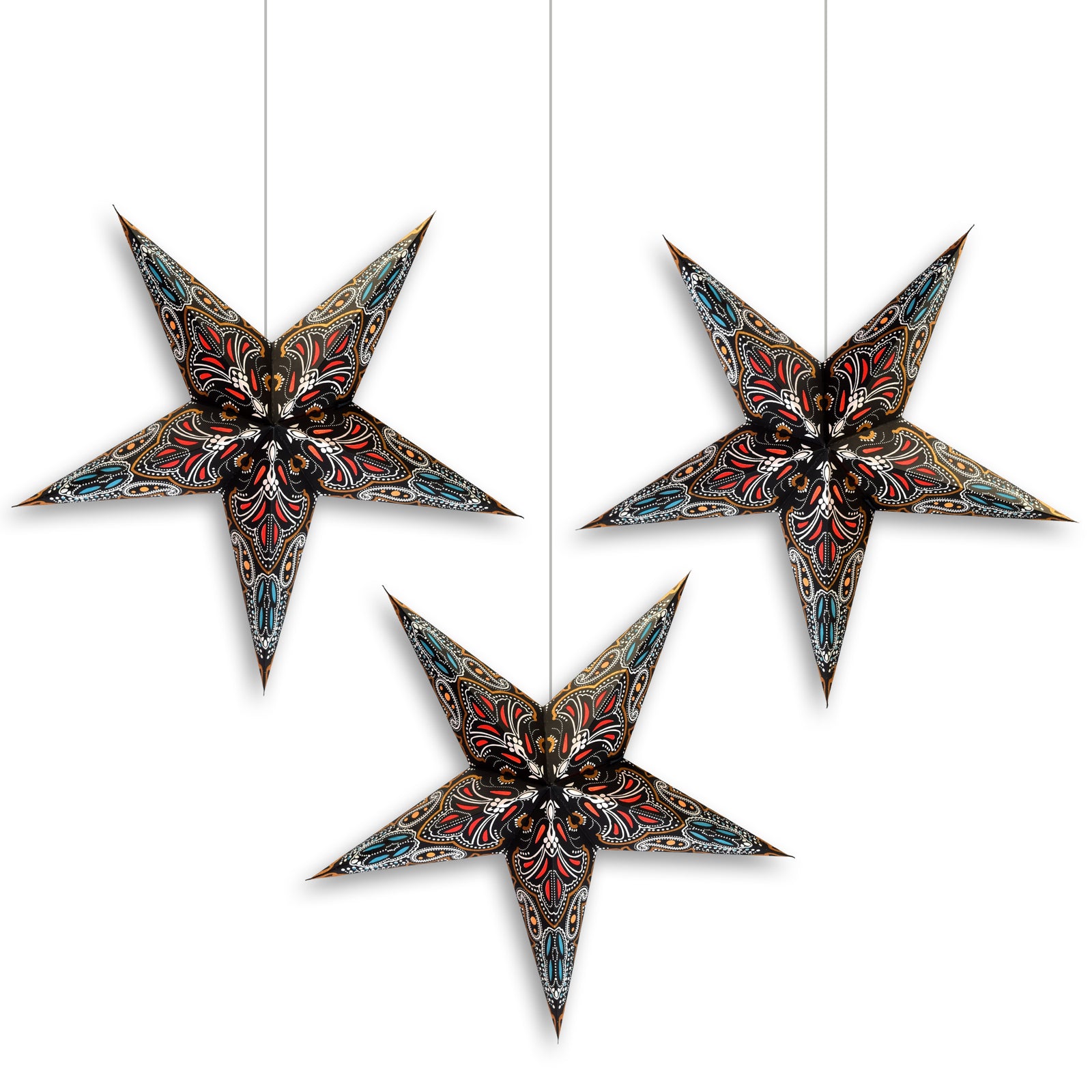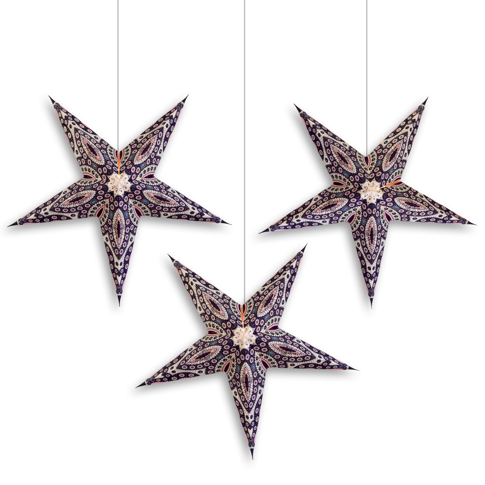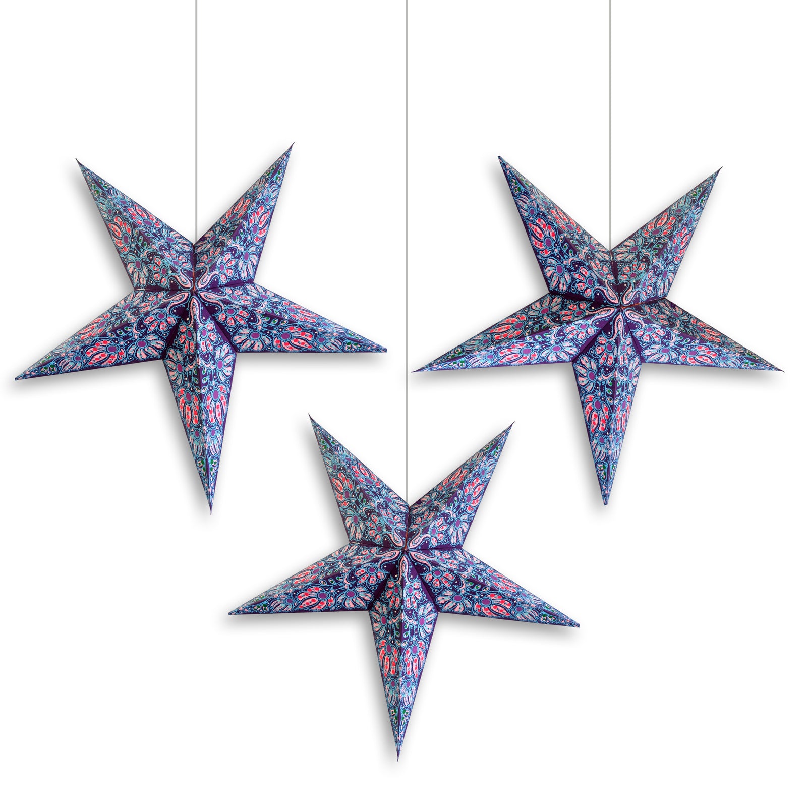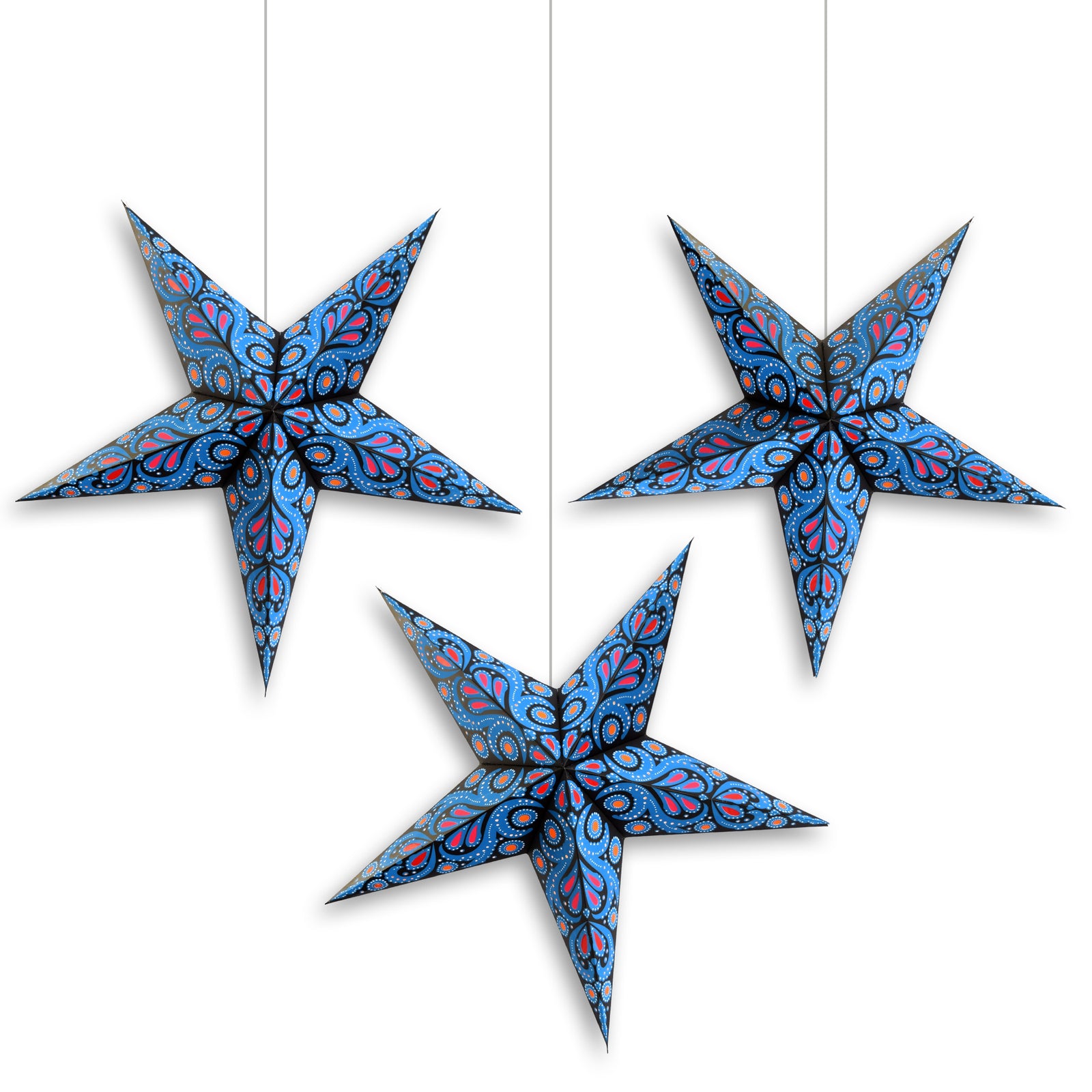 3-PACK Dark Blue Starry Night 24" Illuminated Paper Star Lanterns Hanging Decorations