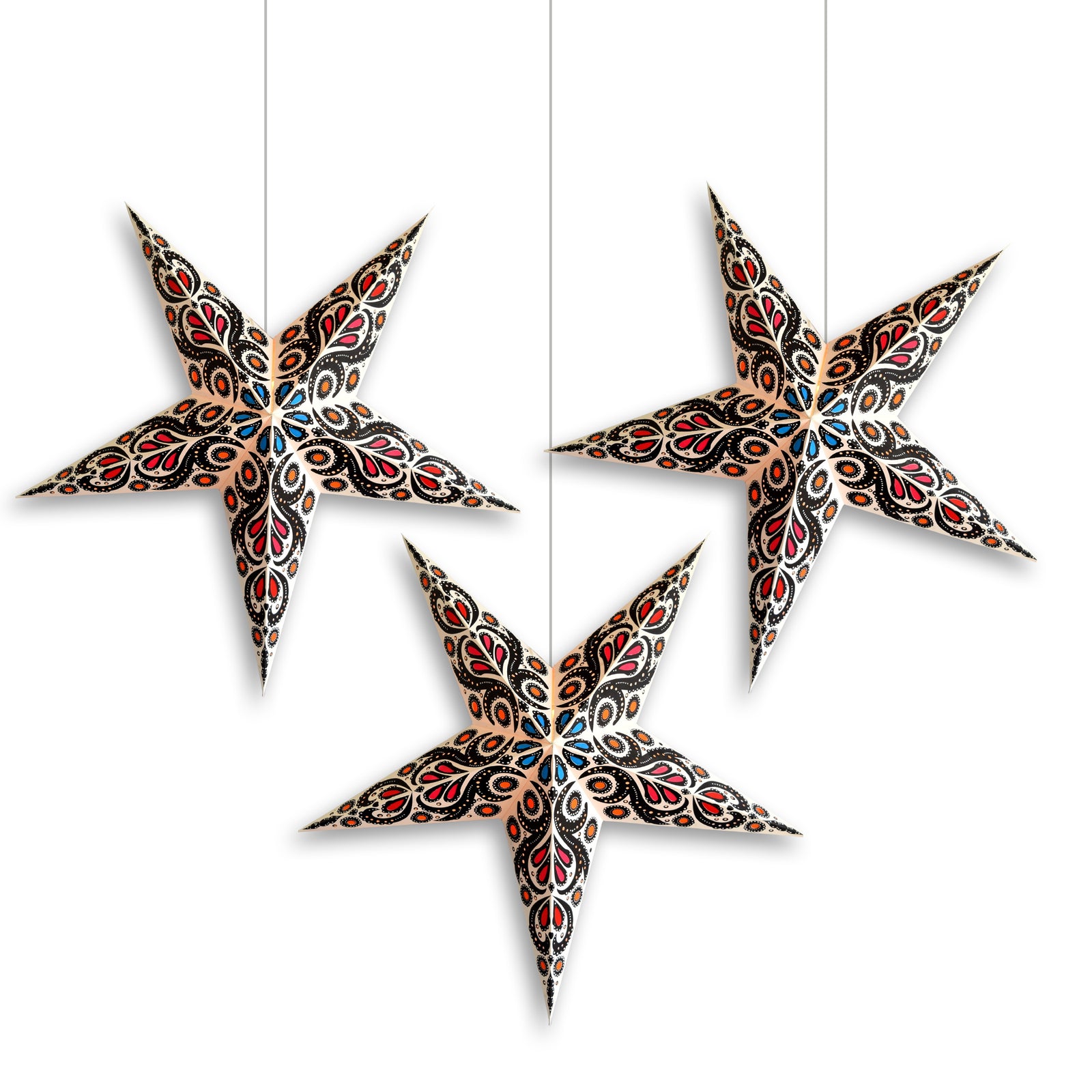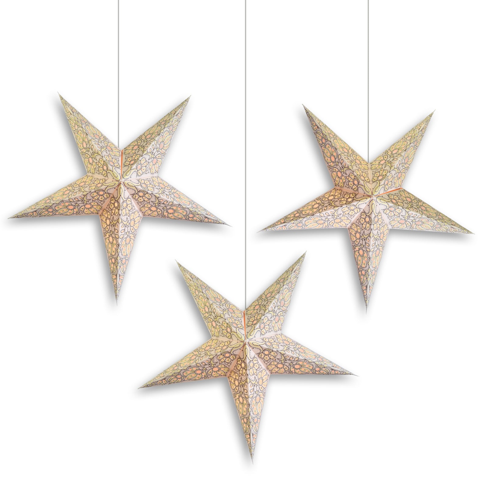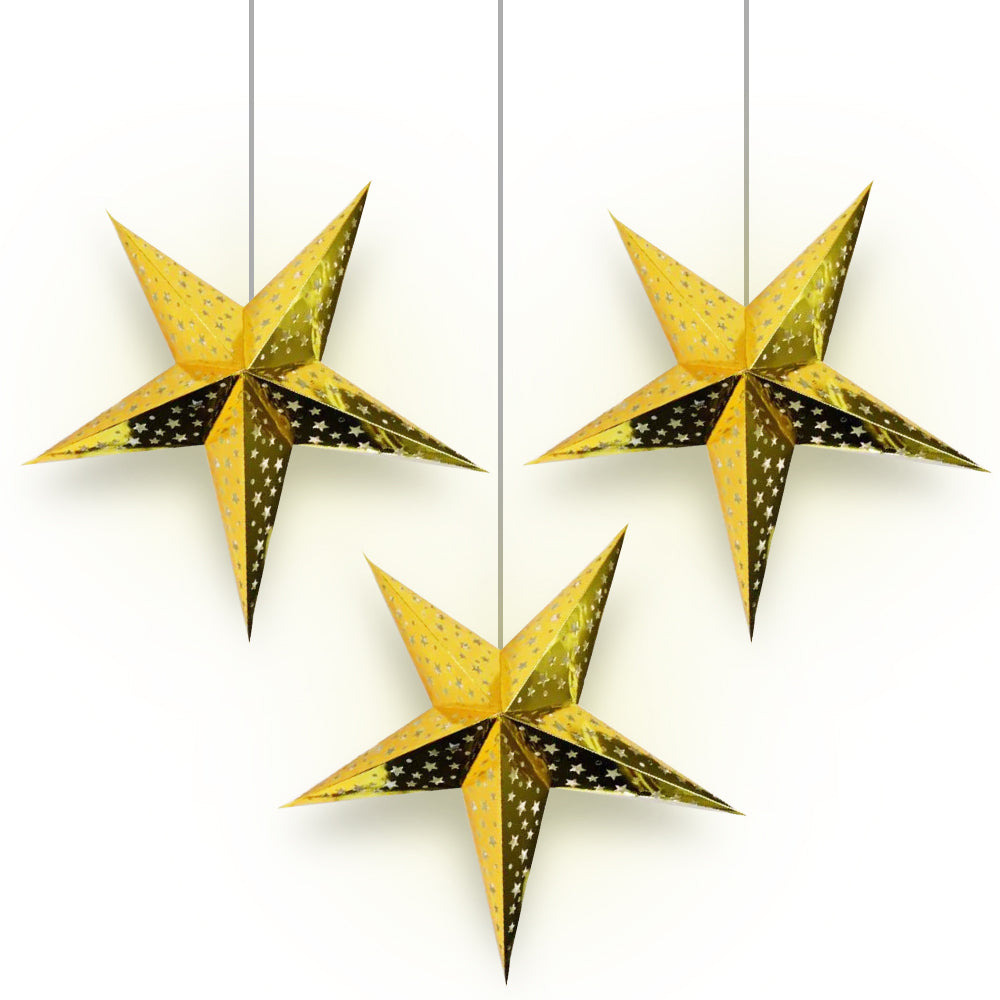 3-PACK Gold Starry Night 26" Illuminated Paper Star Lanterns Hanging Decorations