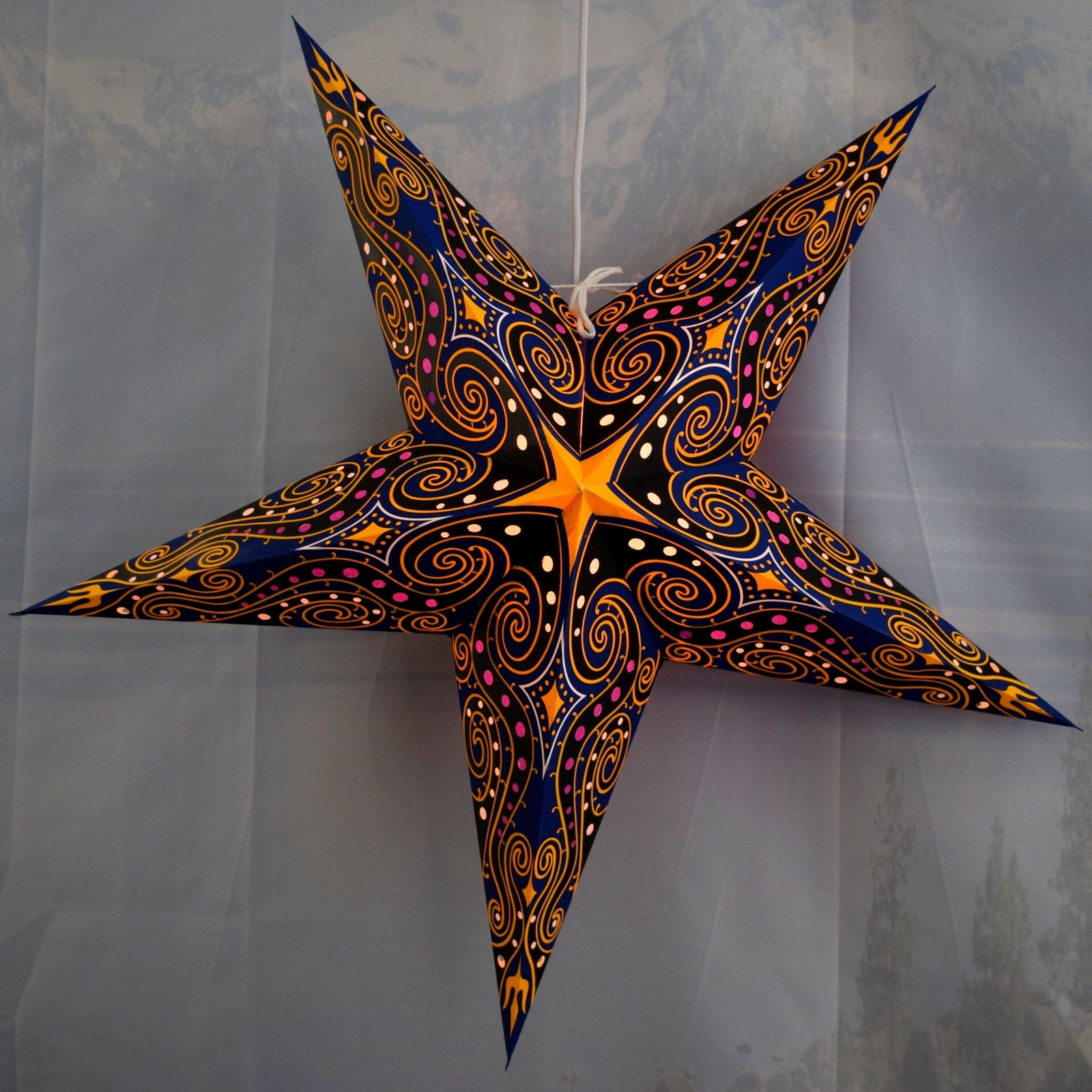 24 Inch Paper Star Lantern, Blue Astral Glow