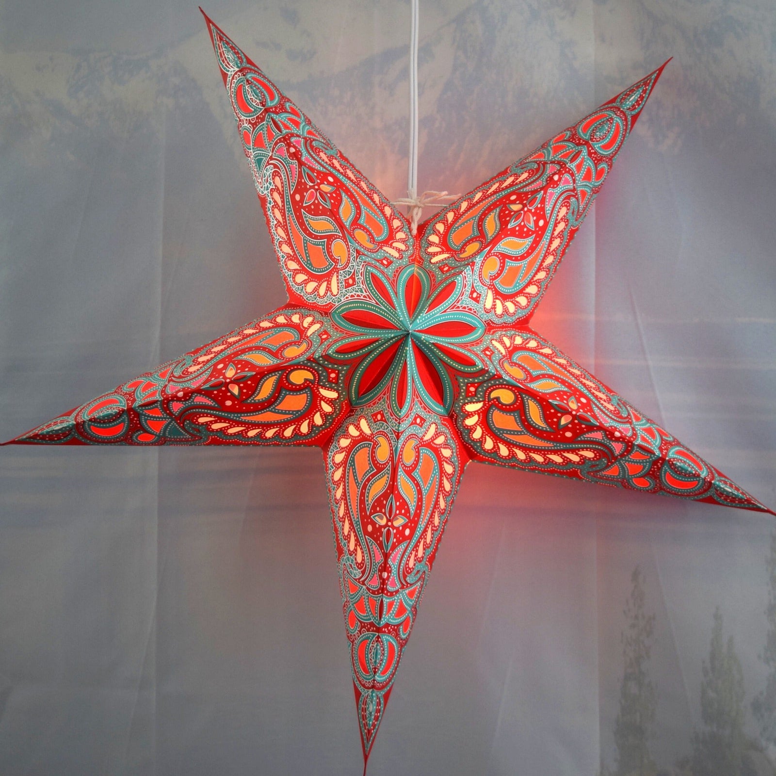 24 Inch Paper Star Lantern, Red Aura Glow Glitter