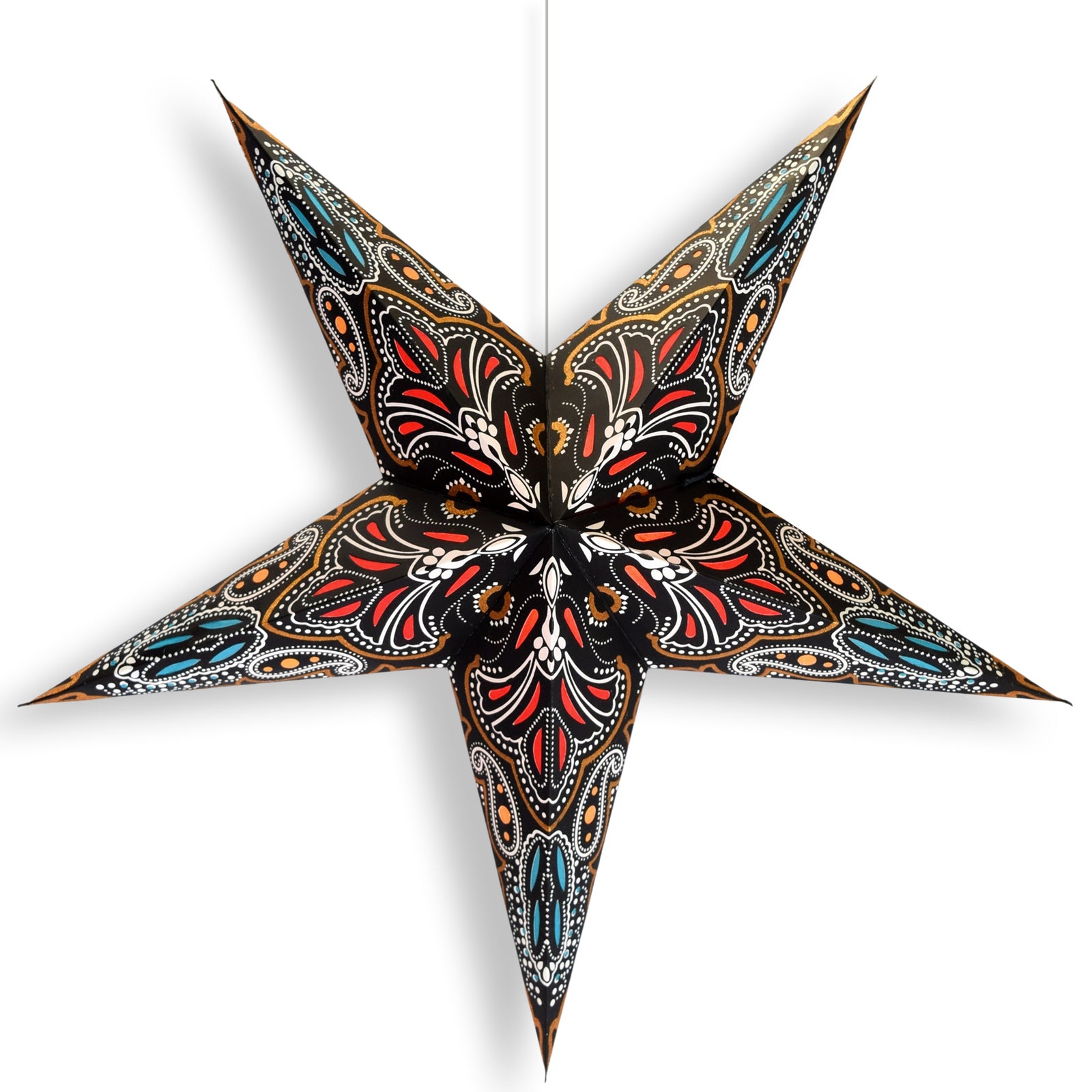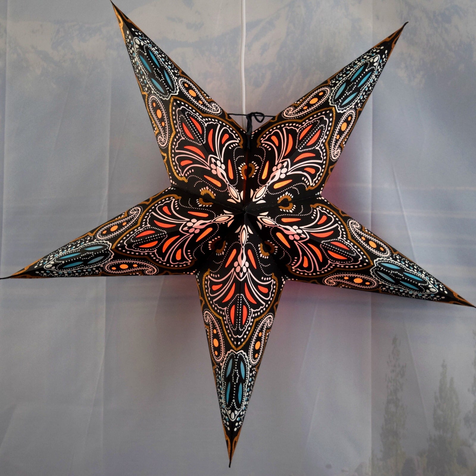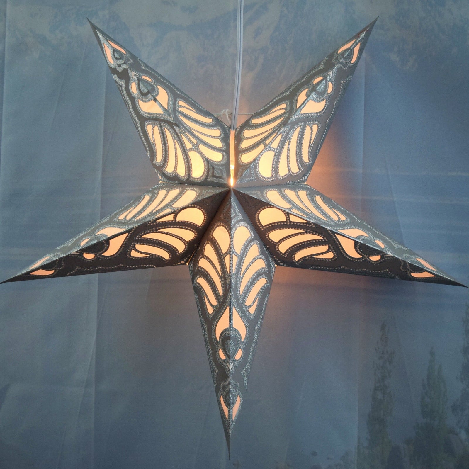 24 Inch Paper Star Lantern, Black Aura Glow Glitter