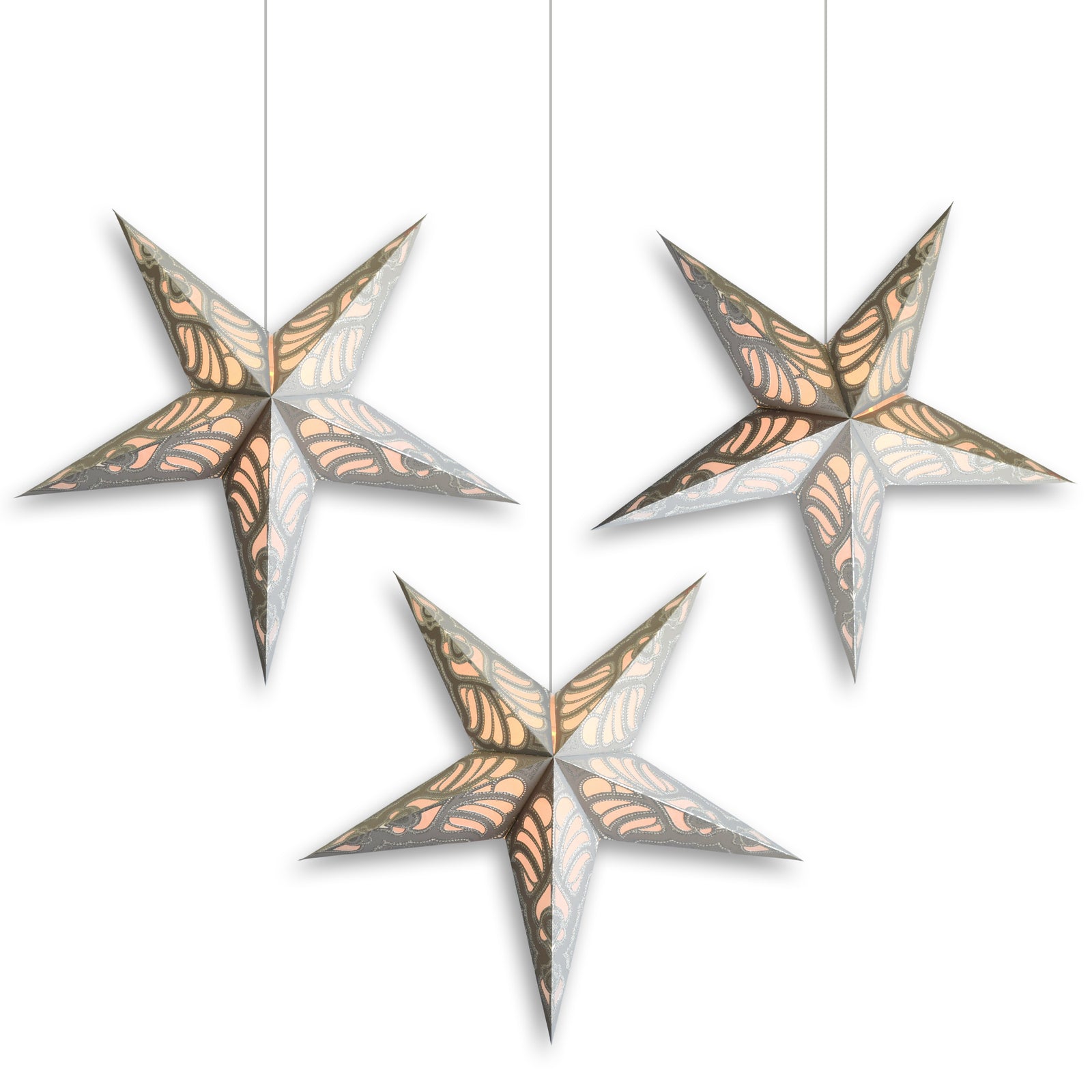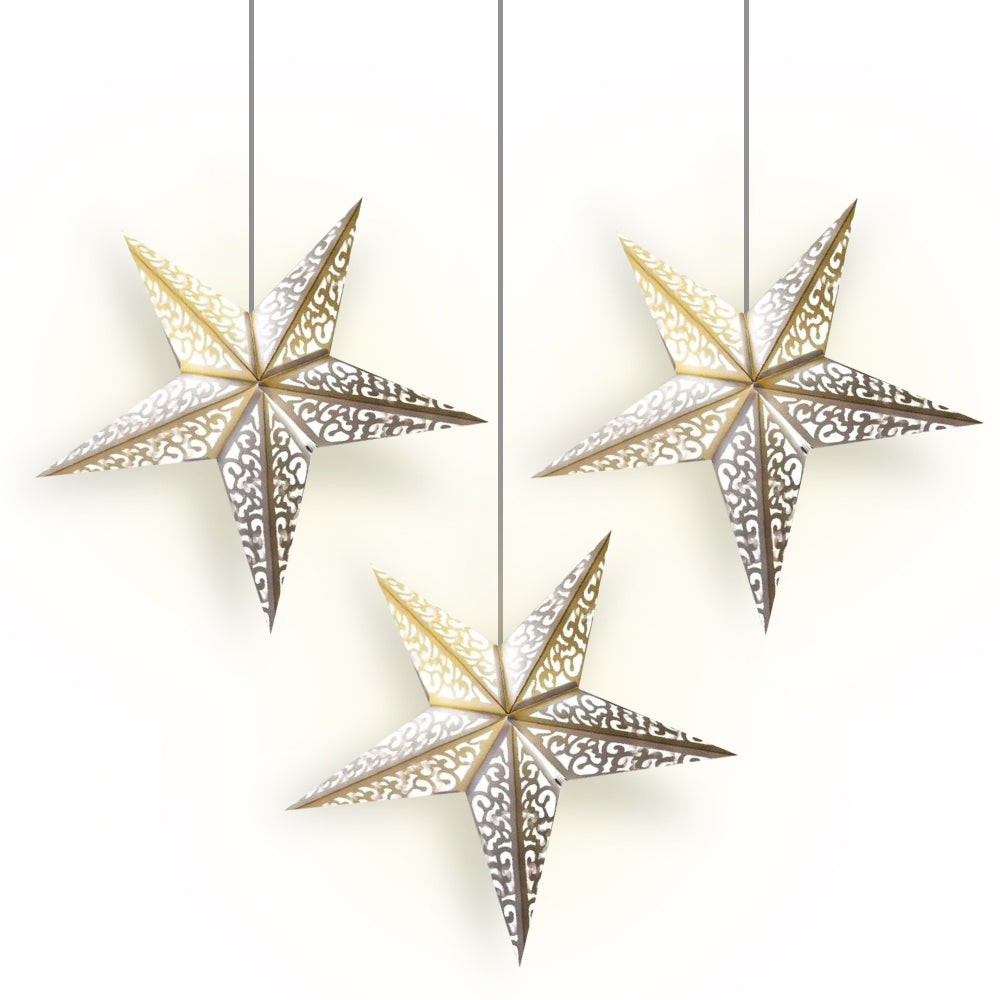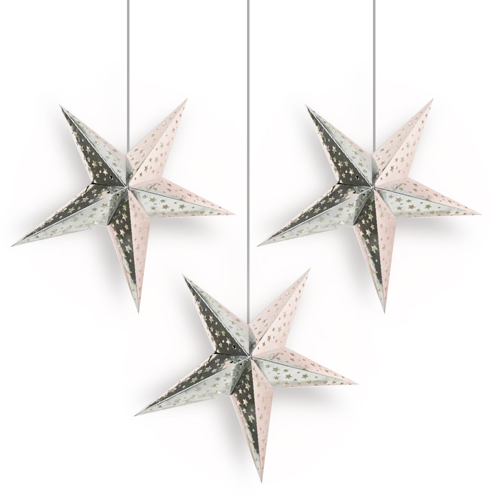 3-PACK Silver Starry Night 26" Illuminated Paper Star Lanterns Hanging Decorations