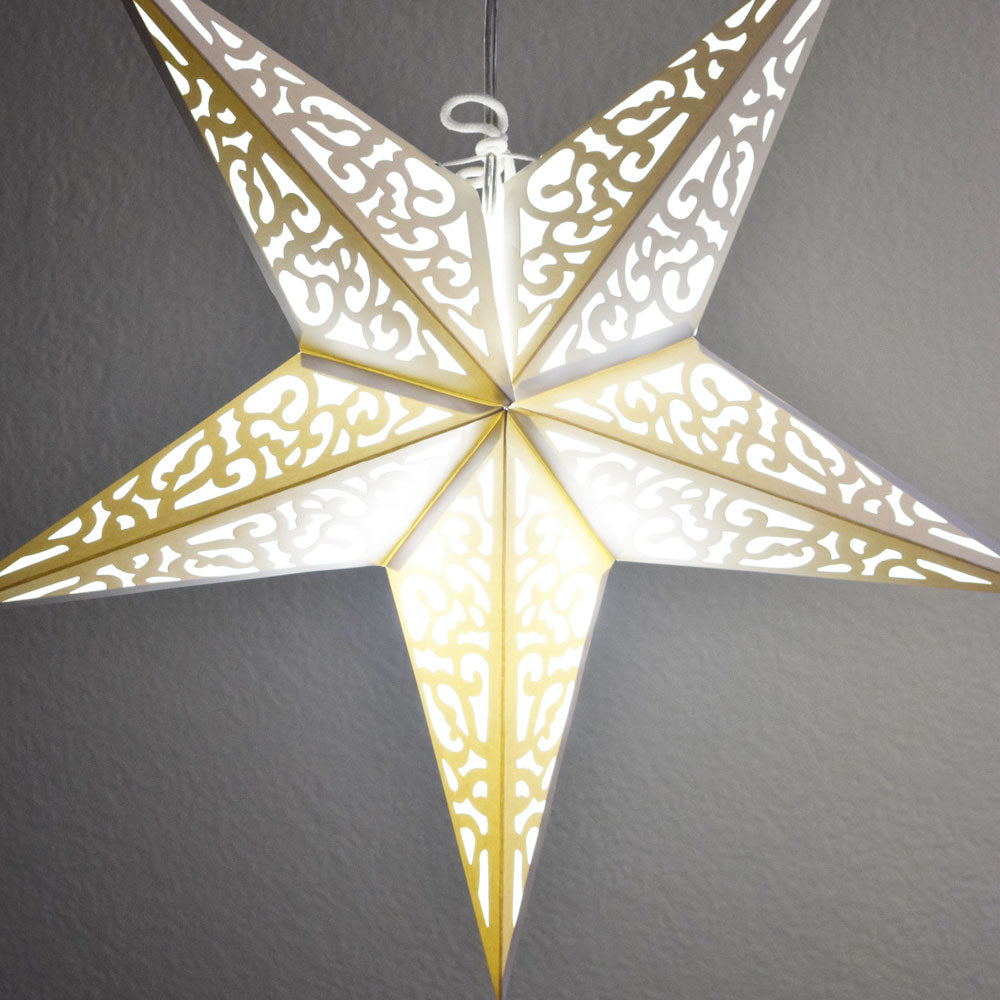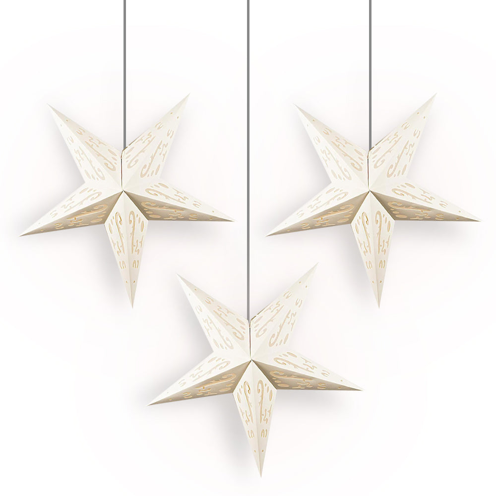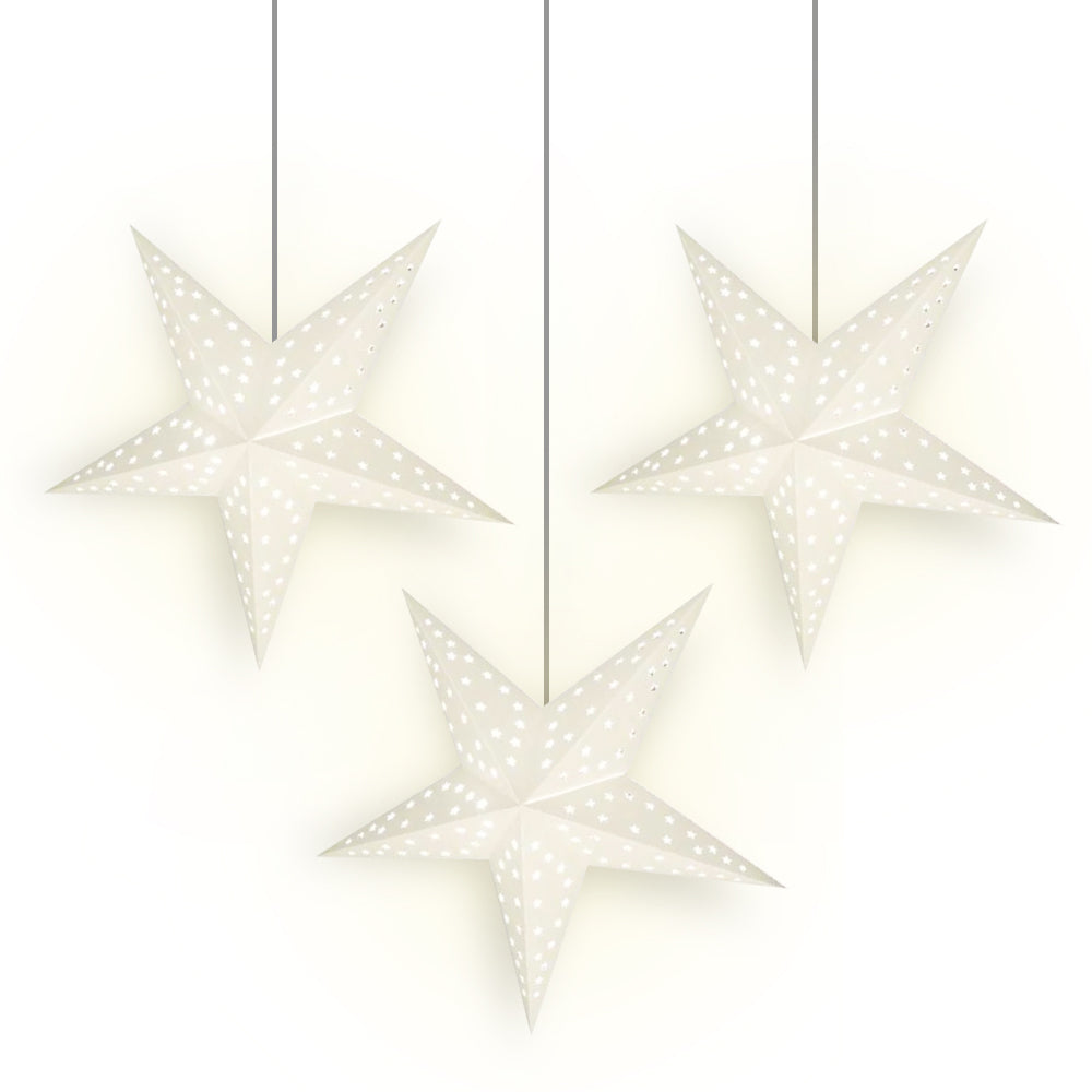3-PACK White Starry Night 24" Illuminated Paper Star Lanterns Hanging Decorations