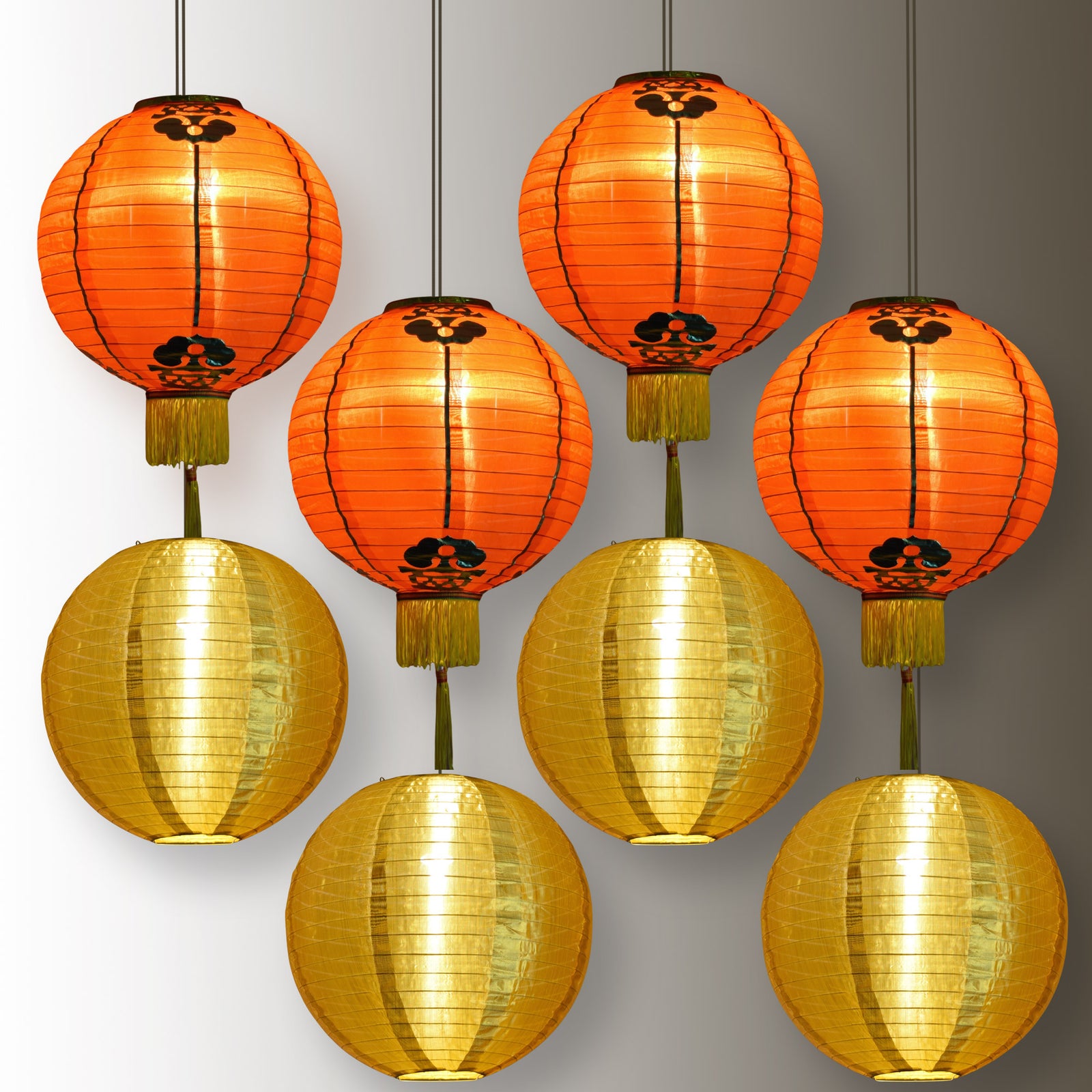 8 PACK | Red Yellow Traditional Chinese Lunar New Year Prosperity Nylon Lantern, Hanging Combo Set from