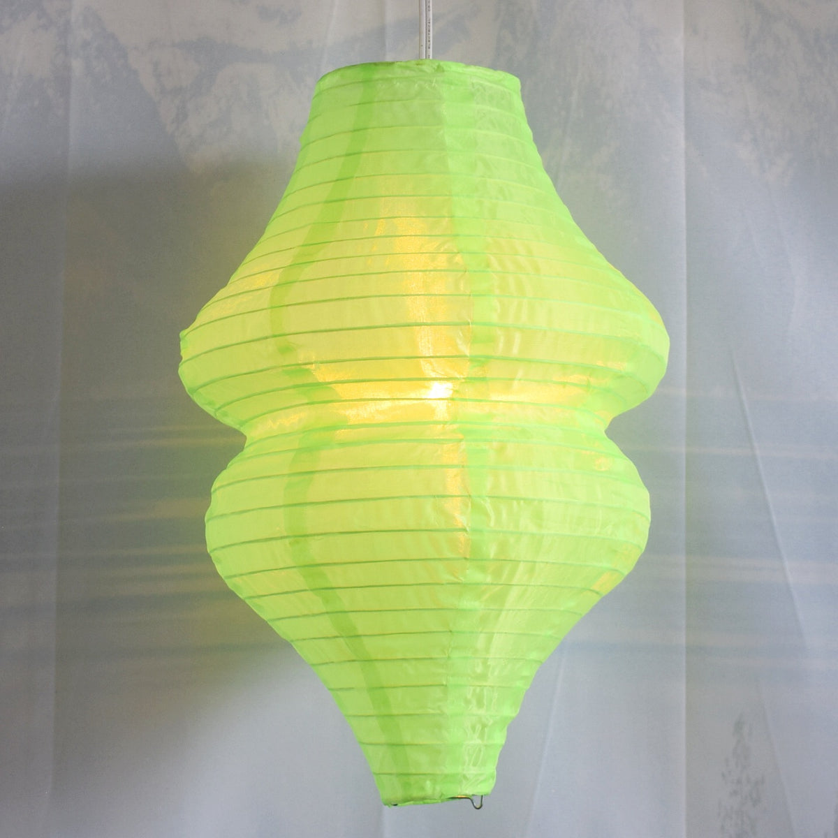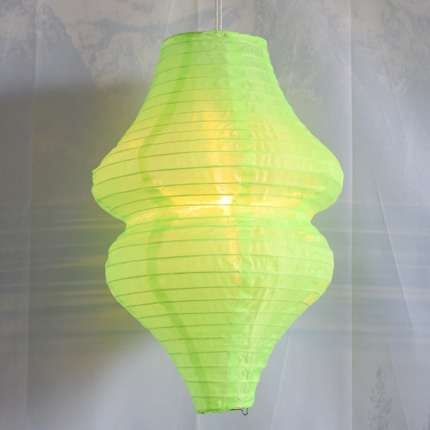 Neon Green Nylon Lanterns in a unique beehive shape. Lantern is held open with a wire expander.