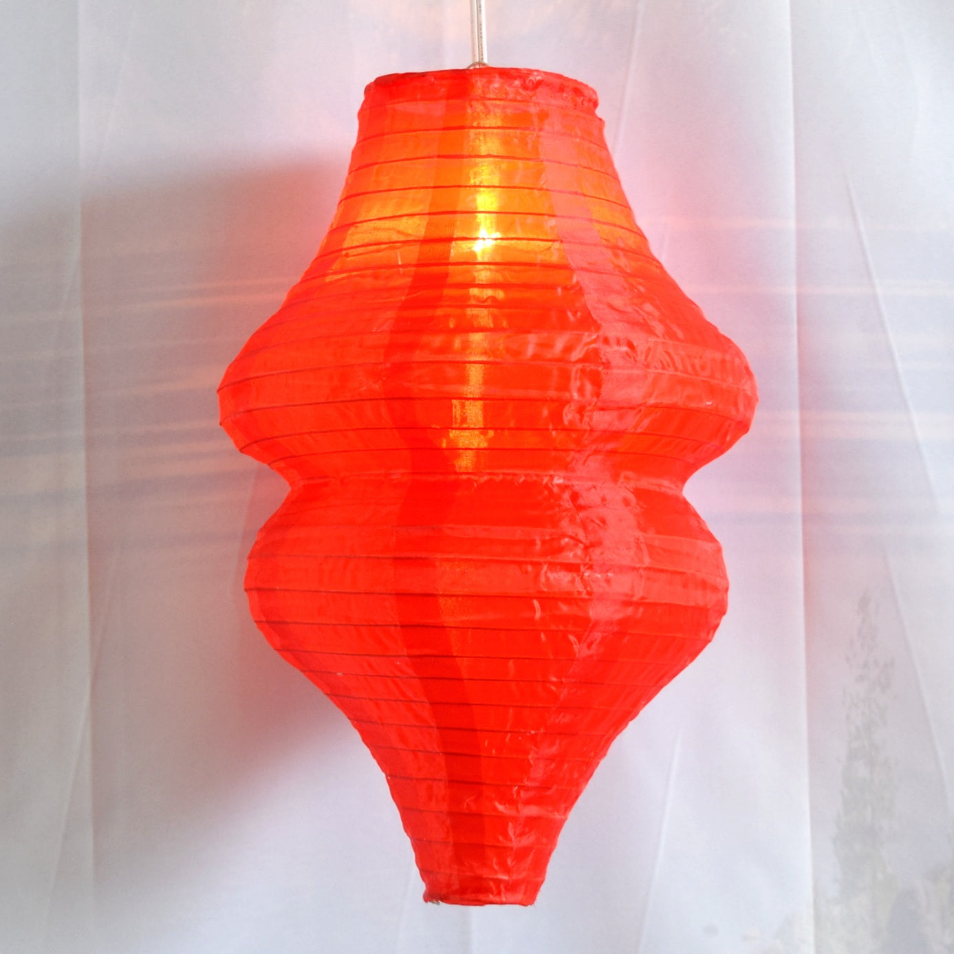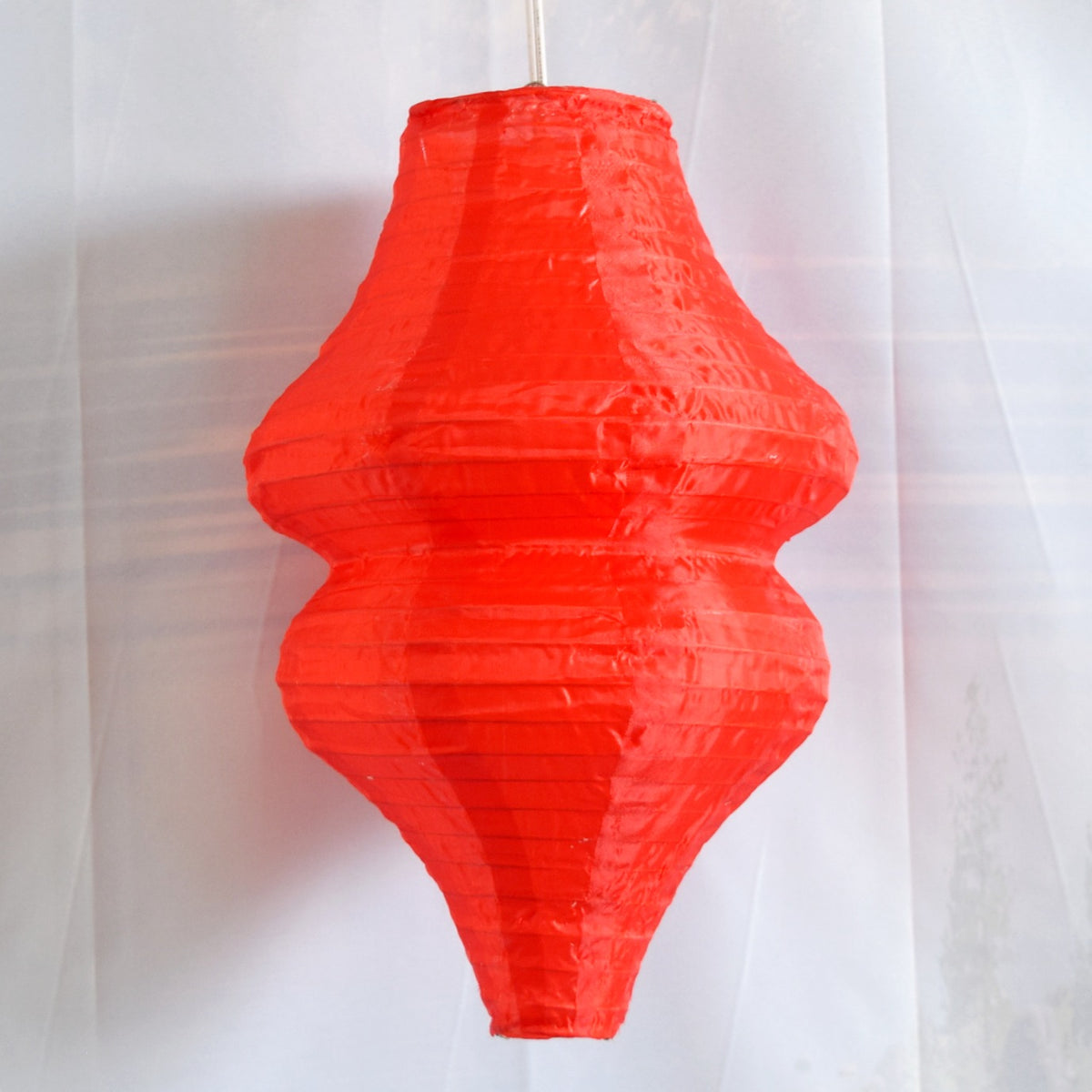 Red Nylon Lanterns in a unique beehive shape. Lantern is held open with a wire expander.