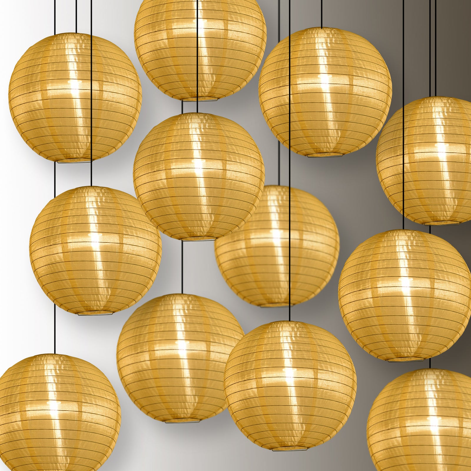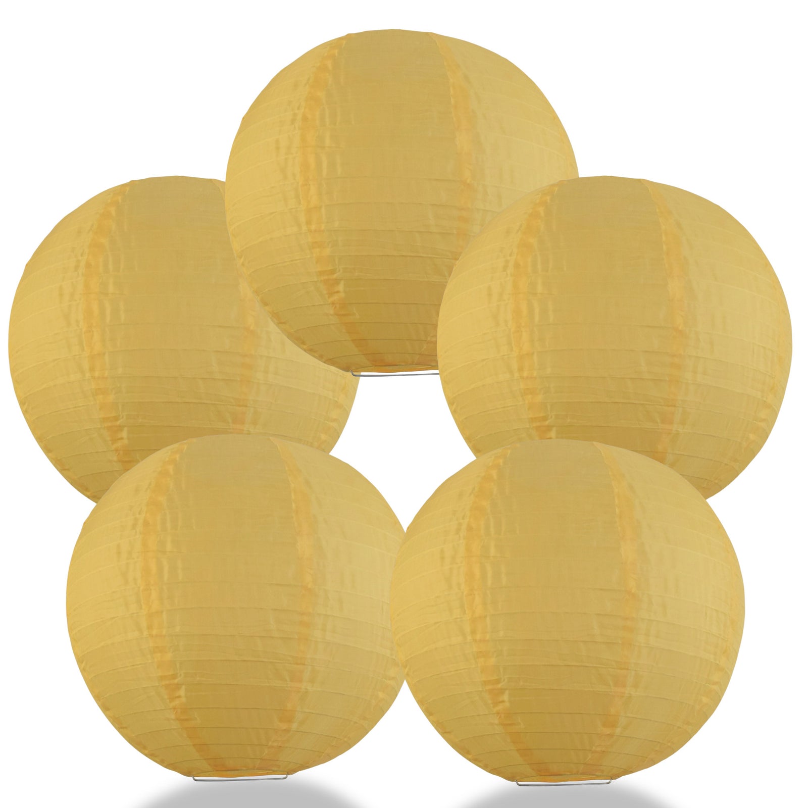 24" Golden Yellow Shimmering Nylon Lantern, Even Ribbing, Durable, Hanging