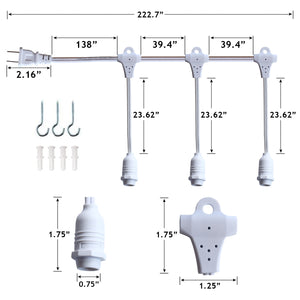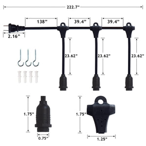 Lighting: Included! Triple Socket Cord - 1x 19FT Outdoor Rated Cord with 3x Evenly-Spaced Sockets and Shatterproof LED Light Bulbs