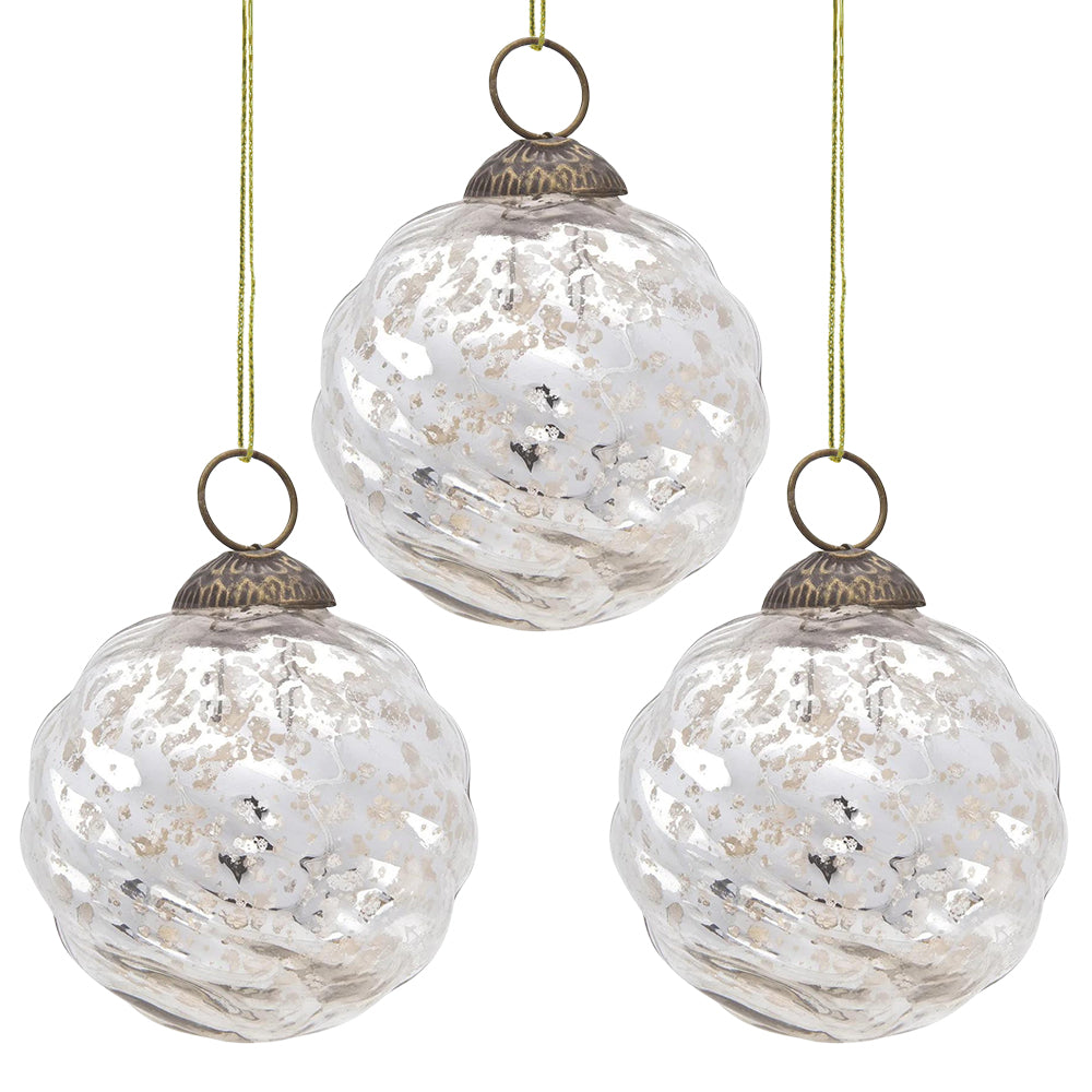 3-PACK | 3" Silver Solene Mercury Glass Swirled Ball Ornament Christmas Decoration
