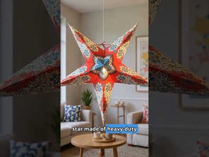Introducing PaperLanternStore’s hand-crafted hanging Paper Star Lantern KIT, perfect for adding a unique and decorative touch to your home, special event, or 4th of July party. Each kit includes a beautifully designed star lantern, a pendant light cord, and an LED light bulb, making it a complete lighting solution. These high-quality lanterns are crafted from thick paper and feature intricate, punched star designs. Whether for home décor or as a stunning centerpiece for weddings and parties, our star lanterns create a magical ambiance in any setting.